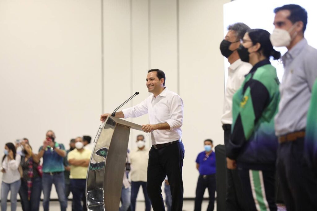 Mérida, Yucatán, 1 de junio de 2022.- Becas deportivas para atletas que obtengan medallas en las Olimpiadas Nacionales Conade 2022, la remodelación y rehabilitación del Centro de Alto Rendimiento Deportivo (CARD), así como la reparación del techo del Centro Acuático “Rommel Pacheco” de la Unidad Deportiva “Kukulcán”, obras en las que se invertirán 35 millones de pesos, anunció este día el Gobernador Mauricio Vila Dosal.