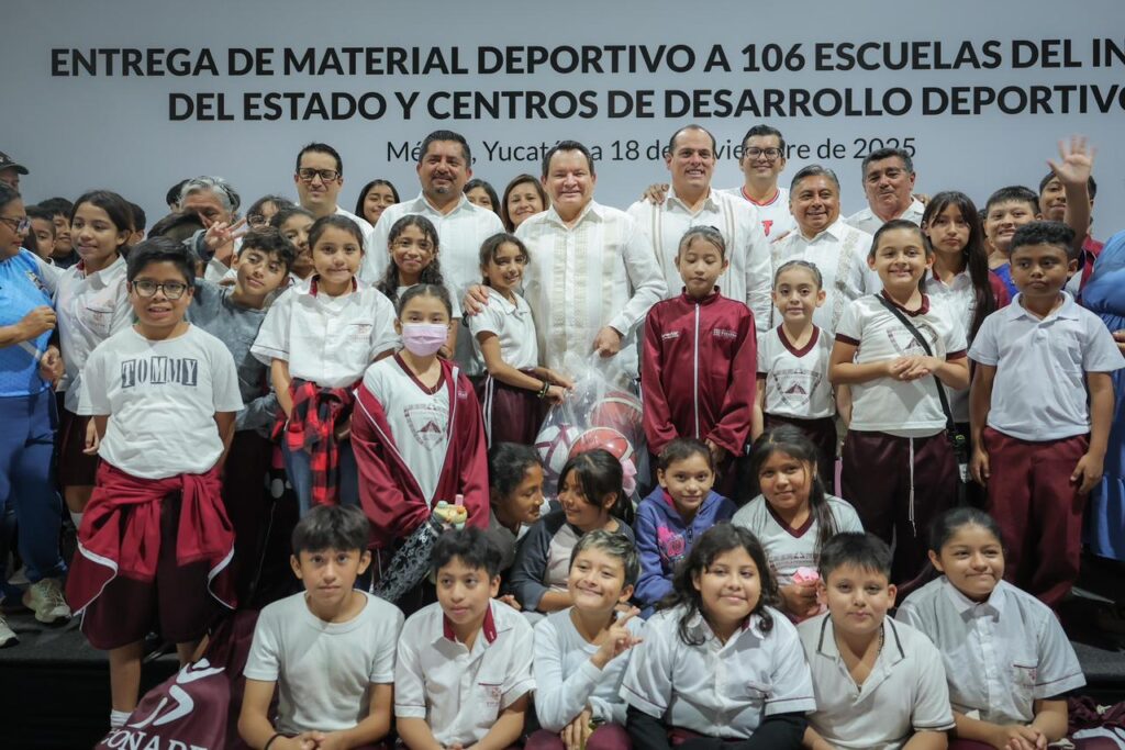 El Gobernador Joaquín Díaz Mena encabezó la entrega de material deportivo a 106 escuelas de diversos municipios yucatecos para fortalecer la formación física de niñas, niños y jóvenes.