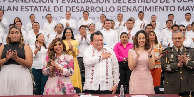 Acompañado de la presidenta honoraria del DIF Yucatán, la maestra Wendy Méndez Naal y en presencia de todos los sectores de la sociedad, representantes de los tres niveles de gobierno, así como de las Fuerzas Armadas, Díaz Mena aseveró que el Plan Estatal de Desarrollo no es un listado de promesas o acciones, es la voz del pueblo convertida en ruta.