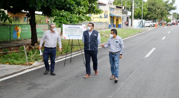 Acompañado de los directores de Obras Públicas y Servicios Públicos, David Loría Magdub y José Collado Soberanis, respectivamente, Barrera Concha recordó que esta obra iniciada en el mes de julio, además de ser de beneficio común contribuye a mejorar la movilidad y, en consecuencia, abona a la reactivación de la ciudad.