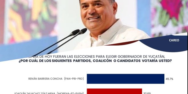 Dichos resultados posicionaron una vez más a Barrera Concha como el favorito de los ciudadanos para ser el nuevo gobernador de Yucatán, con una preferencia del 45.7% del total de la encuesta, resultado que es incluso mayor al resultado obtenido en la último sondeo realizado por esta institución.