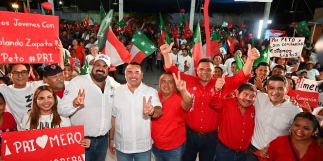 Peto, Yucatán, 16 de marzo 2024.- Rolando Zapata Bello y los priistas de Peto le dieron su respaldo y apoyo a Renán Barrera Concha, candidato al gobierno del estado por la Coalición Fuerza y Corazón por México.