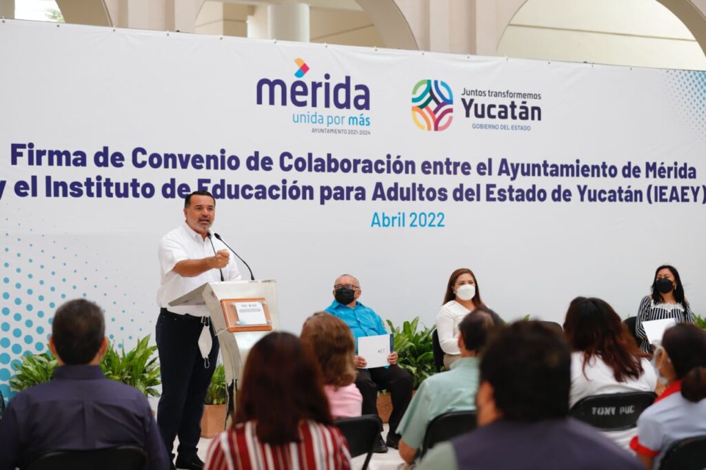 Destacó que por esa razón es tan significativo que hoy el Ayuntamiento de Mérida firme un convenio con el IEAEY, ya que permitirá al Municipio fortalecer la red de apoyo para las personas de 15 años en adelante que quieran aprender a leer, escribir, iniciar o concluir la educación primaria y secundaria.
