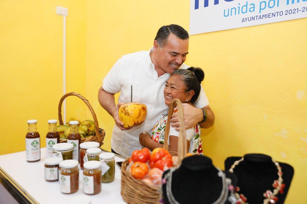 En la palapa central, el Alcalde de Mérida presentó a los expositores del programa Circulo 47 y explicó que el objetivo de esta acción es fomentar la sostenibilidad de las actividades productivas mediante la vinculación de los productores a mercados justos.