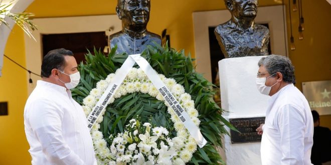 En el acto, que se llevó a cabo ante el busto del recién fallecido maestro, ubicado en el parque de Santa Lucía, el Concejal dio a conocer que durante las actividades del Mérida Fest 2021, se le rendirá un homenaje en la tradicional Alborada, donde los trovadores interpretarán algunos de sus temas y un concierto con artistas invitados.