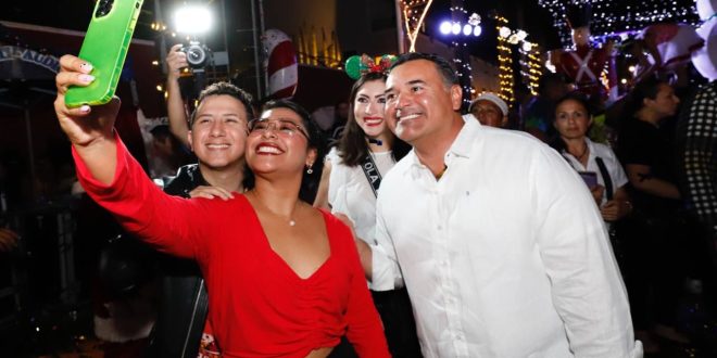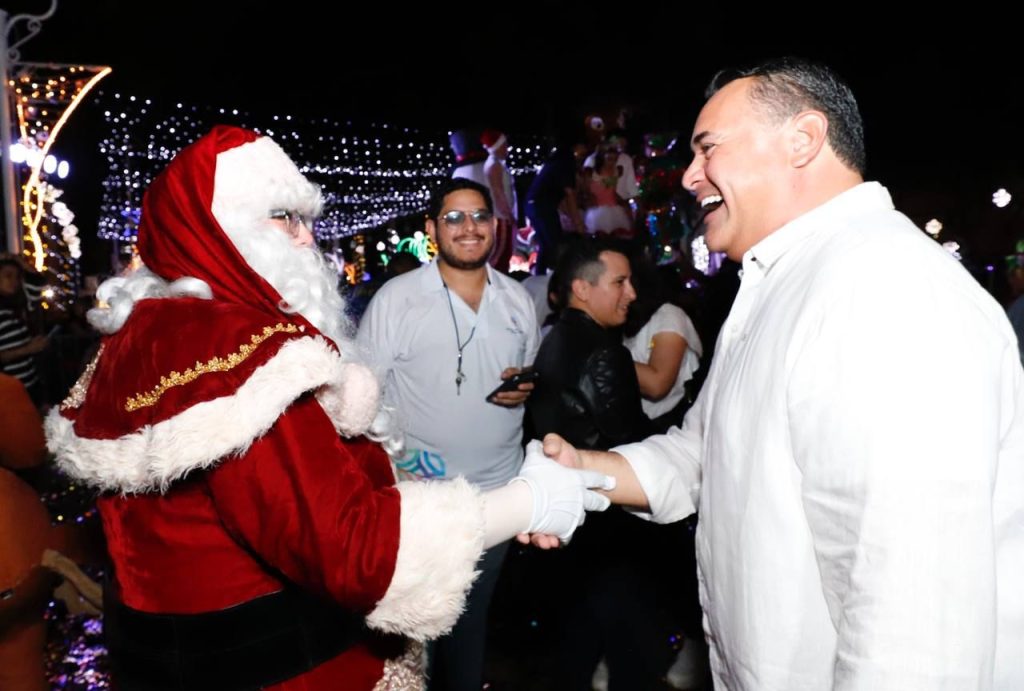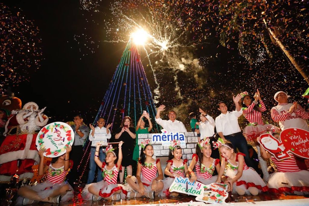 MÉRIDA, Yuc., 01 de diciembre 2022.- Con un llamado a la unión y a fomentar la armonía entre las familias, el Alcalde Renán Barrera Concha encendió las luces del árbol navideño en el inicio del Paseo de Montejo ante la emoción de niños y adultos que se reunieron desde temprano para disfrutar las decoraciones y el show infantil.