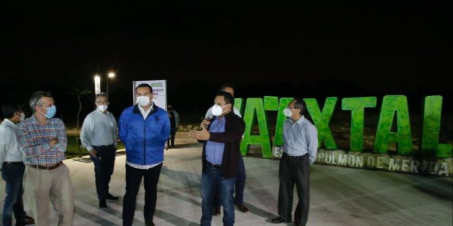 Mérida, 17 de diciembre de 2020. Como parte de los trabajos incluidos dentro del proyecto “Ya´axtal, el Gran Pulmón de Mérida”, esta tarde el alcalde Renán Barrera Concha entregó los andadores e iluminación de este espacio público para el pleno disfrute de la ciudadanía y para contribuir a mejorar la seguridad y calidad de vida de más de 120 mil personas que habitan en el poniente meridano.