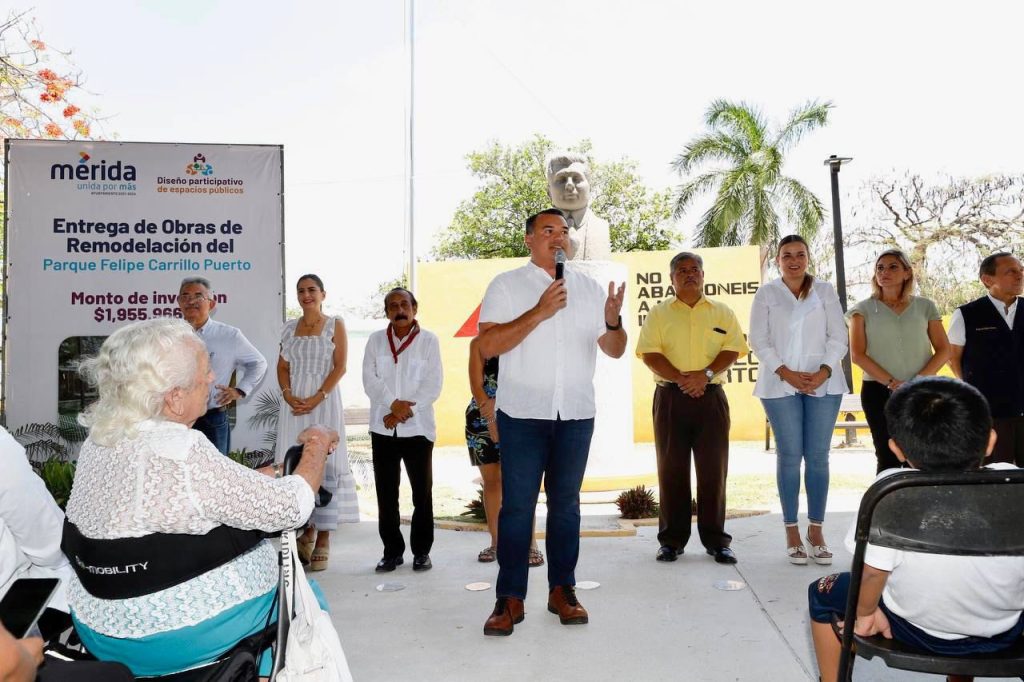 En la entrega de las obras de rehabilitación del parque Felipe Carrillo Puerto, ubicado al oriente de la ciudad, el Alcalde, acompañado de Fanny Mendiburu, presidenta del Comité de Contraloría Social; Luis Orlando Catzin Durán, presidente del Partido Socialista del Sureste; la diputada federal, Cecilia Patrón Laviada y la diputada local, Karla Salazar González; aseguró que la participación ciudadana es fundamental para el diseño de los parques, porque las y los usuarios plantean las necesidades que tienen en materia de infraestructura urbana como son los juegos infantiles, áreas para mascotas, espacios para ejercitarse, entre otras.