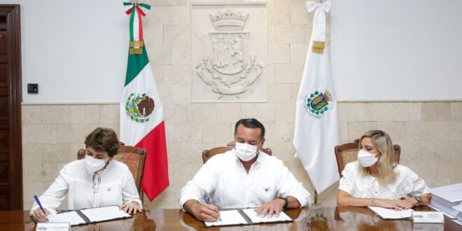 Al encabezar la firma del acta de entrega-recepción, con la que se da por concluida la administración municipal 2018-2021, el Concejal estuvo acompañado por la síndico Diana Canto Moreno y la titular de la Unidad de Contraloría Municipal, Martha Elena Gómez Nechar.