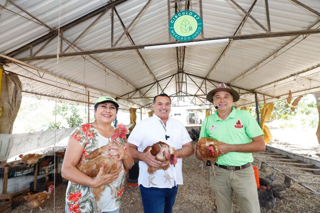 El Alcalde realizó un recorrido por la granja donde actualmente se crían a más de mil 200 gallinas ponedoras de Cuello Pélon (Piroca) y gallinas Plymouth Rock, que al día producen en promedio unos 500 huevos, los cuales se ofrecen a través del geoportal de Circulo 47, la iniciativa Caja del Campo, el mercado Slow Food Mérida en el parque San Juanistas y en los comercios Ya’axtal y Siembra.
