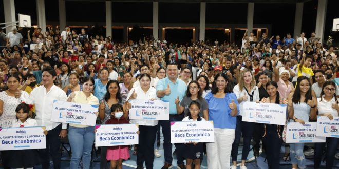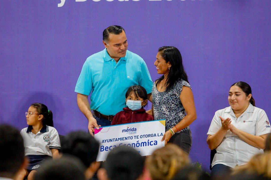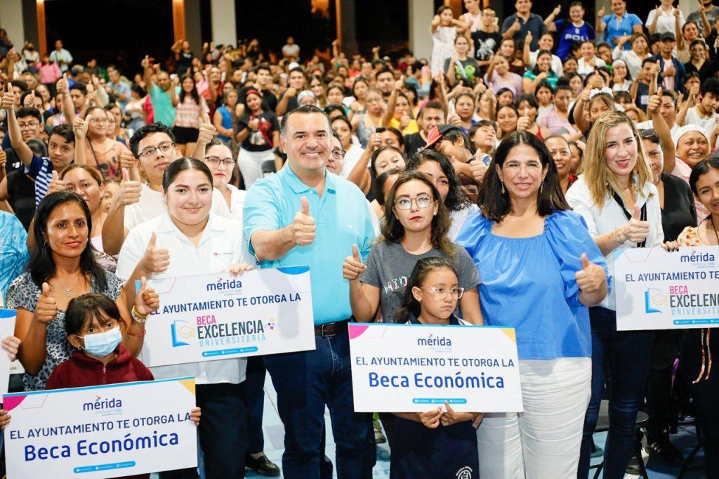 Mérida, Yucatán a 26 de octubre de 2023.- El trabajo que realizamos desde el Ayuntamiento de Mérida está pensado para ofrecerle un mejor futuro a las y los jóvenes mediante la transformación social, como hoy que refrendamos nuestro compromiso con la educación al entregar cerca de 6 mil apoyos entre “Becas de Excelencia Universitaria” y “Becas Económicas” a estudiantes de primaria y secundaria, manifestó el Alcalde Renán Barrera Concha.