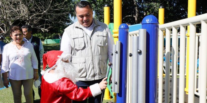 A su vez Teresa Dzul Amaya, dijo que los juegos inclusivos son de gran beneficio para las y los niños que acuden a ese parque, dado a que se encuentra situado a un costado del Centro de Atención al Menor con Necesidades Especiales (CAMNE).