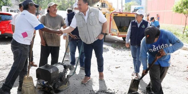 Mérida, Yucatán a 12 de septiembre de 2023.- Para mantener una conectividad eficiente y óptima en las vialidades de la ciudad y las comisarías, el Alcalde Renán Barrera Concha impulsó el programa de Bacheo Permanente para atender en forma oportuna antes y después de la temporada de lluvias los reportes ciudadanos en materia de calles.