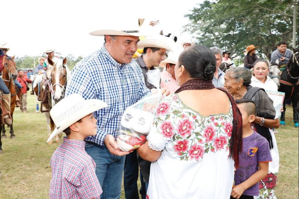 Como parte de su aportación, el Presidente Municipal de Mérida entregó paquetes de despensa con productos de la canasta básica, que beneficiarán a las familias de escasos recursos que viven en las comunidades rurales que forman parte de la ruta.