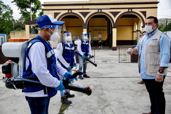 Acompañado de Jesús Aguilar y Aguilar y José Luis Martínez Semerena, directores de Bienestar Social y Desarrollo Social, respectivamente, señaló que los trabajos de fumigación y abatización se realizan en coordinación con la Secretaría de Salud del Estado de Yucatán y exhortó a la ciudadanía a colaborar con los brigadistas para hacer más eficiente el combate al mosco.