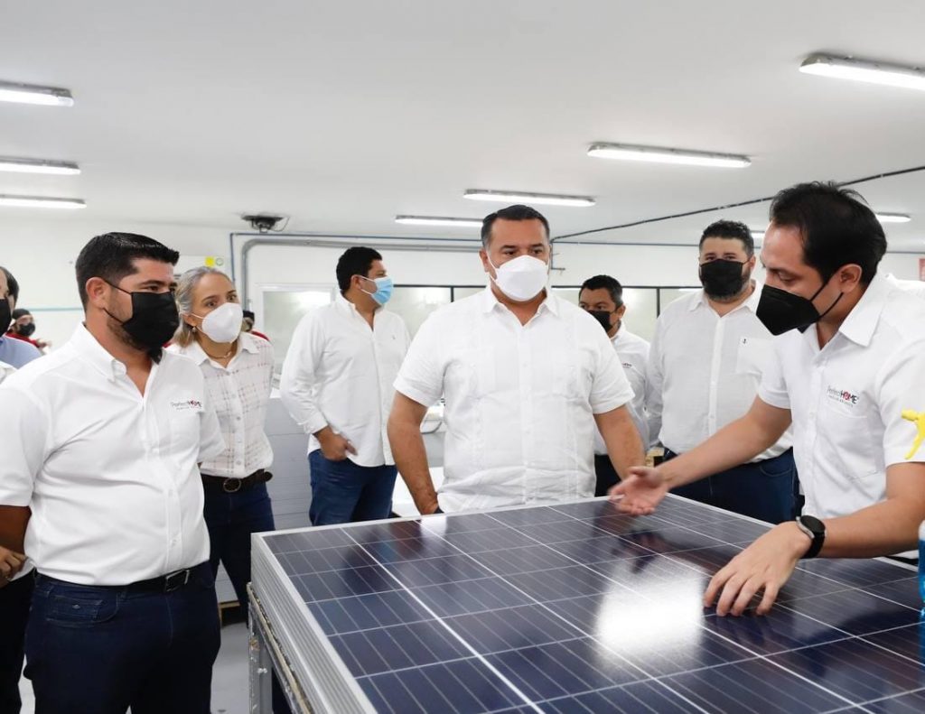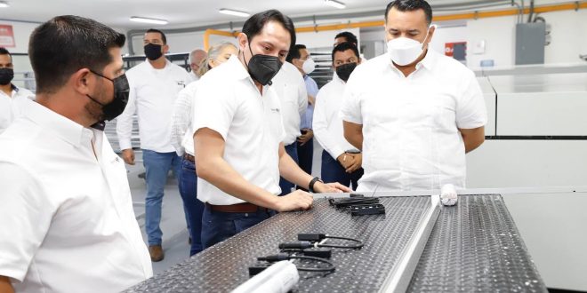Acompañado de Francisco González Arceo, director General, y Christabel Ku Ojeda, directora de Finanzas y Contabilidad, Barrera Concha recorrió el área de producción para observar el proceso de elaboración de los paneles solares, donde la explicación del procedimiento estuvo a cargo Luis Arceo, gerente del área de Producción, y Marcos Ramos, encargado de la zona.