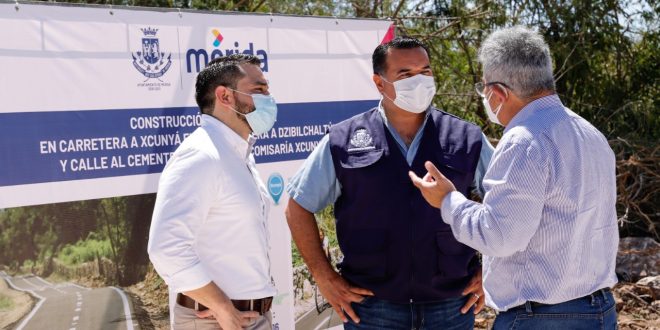 En la entrada a la comisaría de Xcunyá, el Presidente Municipal, acompañado por la comisaria Fidelia May Chalé, dio el banderazo de inicio de la construcción de ciclopista, obra de 3.05 km que conectará a la comisaría con la carretera a Dzibilchaltún y la calle 20 al cementerio de Xcunyá.