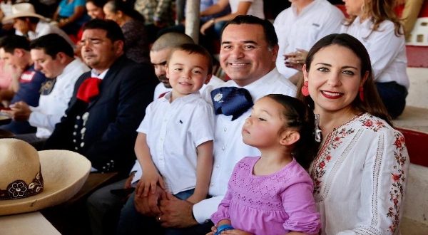 Acompañado de su esposa, Diana Castillo Laviada, presidenta del DIF Mérida, y de sus hijos Renán y Daniela, el primer edil llegó al lienzo charro “Agustín Sánchez Antuniano” para abanderar el torneo de escaramuzas, que se desarrolló en un ambiente cien por ciento familiar.