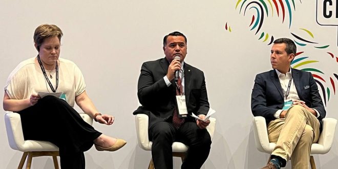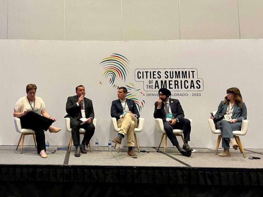 En esta mesa “Gestión de Recursos y Residuos y Economía Circular”, que forma parte de la agenda de actividades de la Cumbre de las Américas, participaron los alcaldes Ravinder Bhalla, de Hoboken; y Claudio Castro, de Renca; así como, Jamie Harkins, de Iniciativas Climáticas de la Ciudad de Boulder, Colorado, y Alyssa Wilbur, de Local Governments for Sustaintability USA (ICLEI).