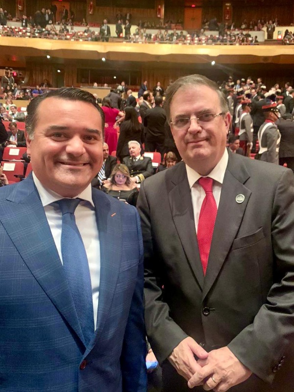 En el evento el alcalde Renán Barrera también saludo e intercambió palabras con el Canciller Marcelo Ebrard, quien en representación del presidente de México, Andrés Manuel López Obrador, acudió a la toma de posesión del presidente de Guatemala, Alejandro Giammattei.