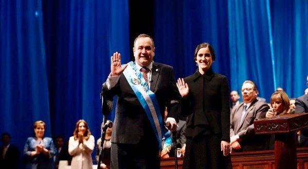 La toma de protesta se realizó a las 19 horas, en el teatro nacional “Miguel Ángel Asturas”, en la ciudad de Guatemala.