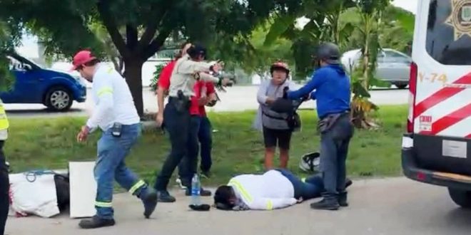 MÉRIDA, Yuc., 31 de julio 2025.- La tarde de ayer miércoles, un motociclista identificado como repartidor de Bepensa protagonizó un fuerte accidente en la lateral del Anillo Periférico de Mérida, a la altura del Km. 19.