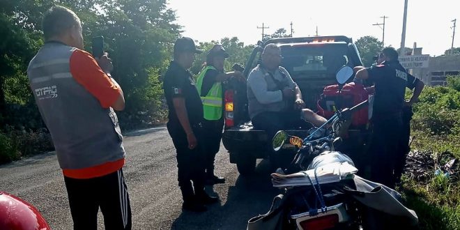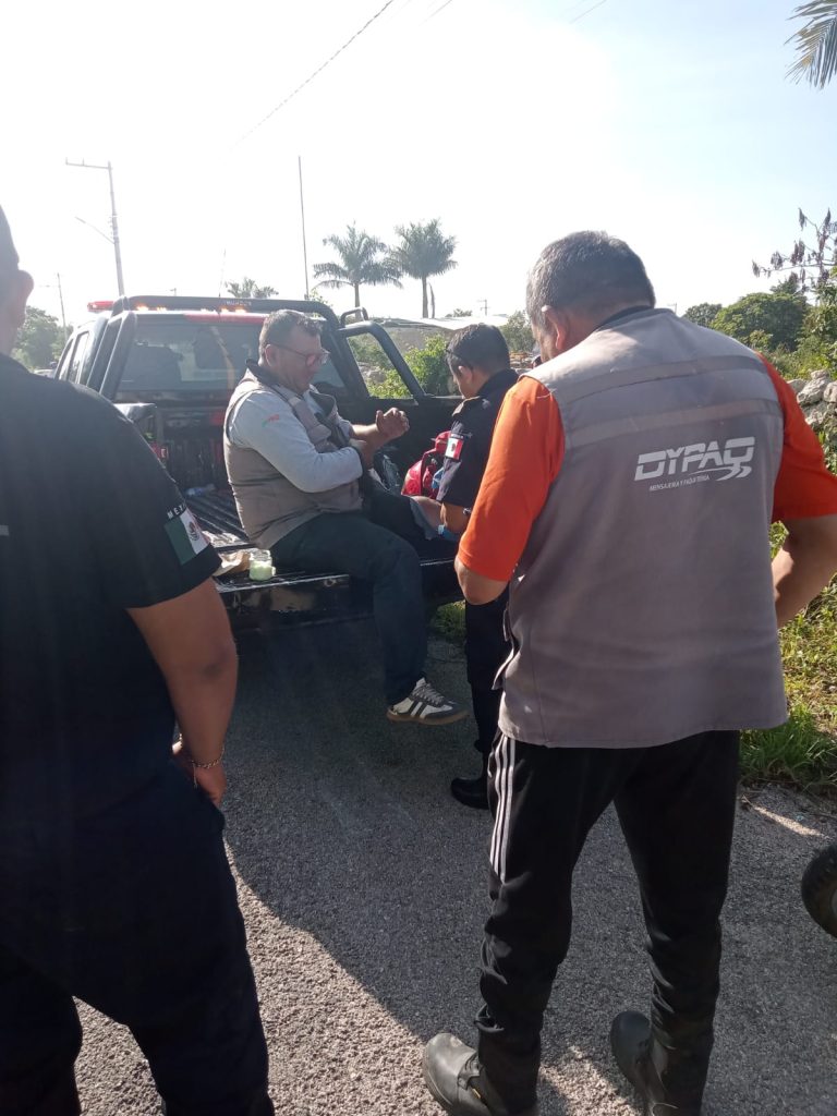 El motociclista fue identificado como Henry Góngora Martínez, de 50 años, quien tras derrapar resultó con raspones en el tarso. Paramédicos de la ambulancia Y-38 de la SSP y policías municipales de Tetiz acudieron al sitio y lo atendieron sin que fuera necesario su traslado a un hospital.