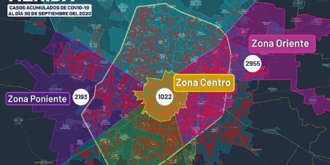 Específicamente, en Mérida se han diagnosticado 10,409 personas contagiadas de Coronavirus (casos acumulados al 30 de septiembre), que viven en: