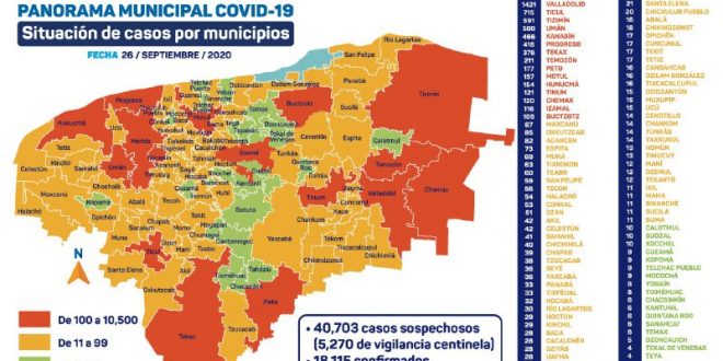 Mérida, Yucatán, 26 de septiembre de 2020.- Este es el parte médico de este sábado 26 de septiembre: Como hemos señalado, en la reapertura económica los datos más importantes son la ocupación hospitalaria y los ingresos diarios. El día de hoy tenemos 175 pacientes en hospitales públicos. 14,863 pacientes ya se recuperaron: no presentan síntomas ni pueden contagiar. Esta cifra representa el 82% del total de contagios registrados, que son 18,115. Hoy se detectaron 147 nuevos contagios de Coronavirus.