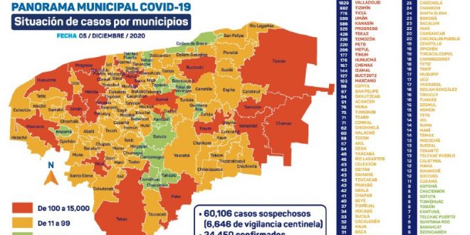 Mérida, Yucatán, 5 de diciembre de 2020.- Este es el parte médico de este sábado 5 de diciembre: Como hemos señalado, en la reapertura económica los datos más importantes son la ocupación hospitalaria y los ingresos diarios. El día de hoy tenemos 137 pacientes en hospitales públicos. 20,723 pacientes ya se recuperaron: no presentan síntomas ni pueden contagiar. Esta cifra representa el 84% del total de contagios registrados, que son 24,450. Hoy se detectaron 110 nuevos contagios de Coronavirus.