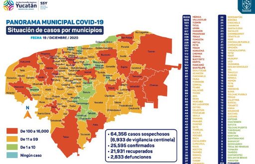 Específicamente, en Mérida se han diagnosticado 15,271 personas contagiadas de Coronavirus (casos acumulados al 18 de diciembre), que viven en: