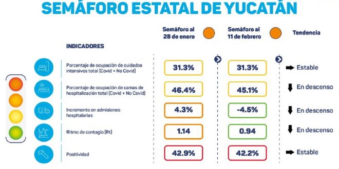 ESTOS SON LOS INDICADORES DEL SEMÁFORO ESTATAL DE YUCATÁN ESTE JUEVES 11 DE FEBRERO:
