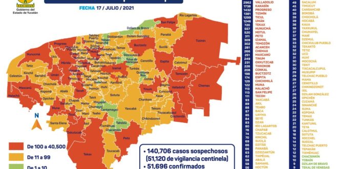 Mérida, Yucatán, 17 de julio de 2021.-Este es el parte médico de este sábado 17 de julio: Del lunes 19 al viernes 23 se realizará la aplicación de vacunas en los siguientes municipios:
