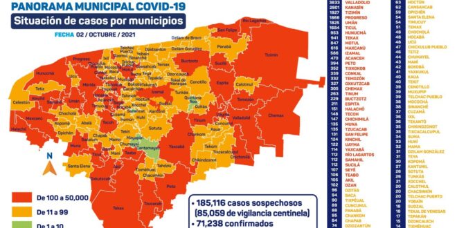 Específicamente, en Mérida se han diagnosticado 42,563 personas contagiadas de Coronavirus (casos acumulados al 1 de octubre), que viven en: