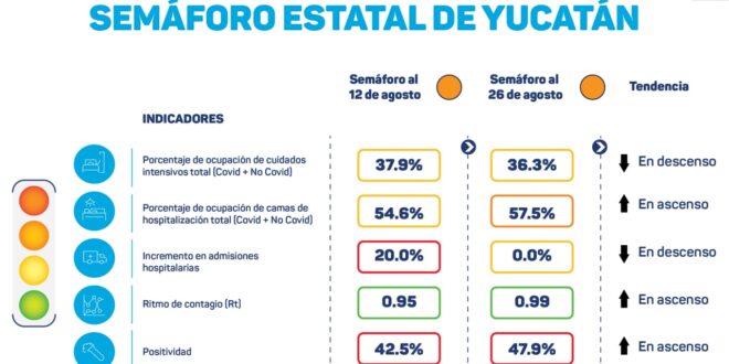 ESTOS SON LOS INDICADORES DEL SEMÁFORO ESTATAL DE YUCATÁN ESTE JUEVES 26 DE AGOSTO:
