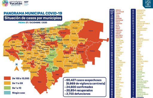 Específicamente, en Mérida se han diagnosticado 14,623 personas contagiadas de Coronavirus (casos acumulados al 6 de diciembre), que viven en: