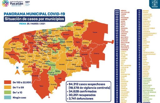 Mérida, Yucatán, 25 de marzo de 2021.- Este es el parte médico de este jueves 25 de marzo: