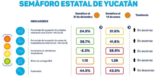 ESTOS SON LOS INDICADORES DEL SEMÁFORO ESTATAL DE YUCATÁN ESTE JUEVES 14 DE ENERO: