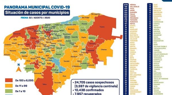 Mérida, Yucatán, 2 de agosto de 2020.- A continuación, el parte médico de este domingo 2 de agosto: 7,957 pacientes ya se recuperaron: no presentan síntomas ni pueden contagiar. Hoy se detectaron 215 nuevos contagios de Coronavirus.