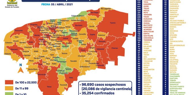 Mérida, Yucatán, 5 de abril de 2021.- Este es el parte médico de este lunes 5 de abril: En los últimos días se ha registrado un incremento importante en los ingresos hospitalarios, por lo que se pide a la población no bajar la guardia y continuar actuando con responsabilidad y siguiendo las medidas sanitarias, para evitar comprometer la capacidad hospitalaria e interrumpir el proceso de reactivación económica.