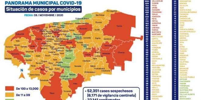 Específicamente, en Mérida se han diagnosticado 12,785 personas contagiadas de Coronavirus (casos acumulados al 8 de noviembre), que viven en: