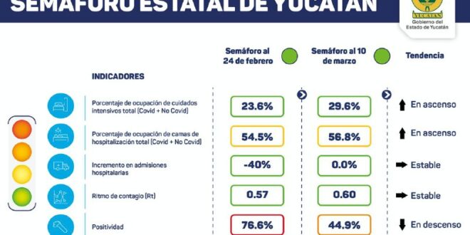 ESTOS SON LOS INDICADORES DEL SEMÁFORO ESTATAL DE YUCATÁN ESTE JUEVES 10 DE MARZO: