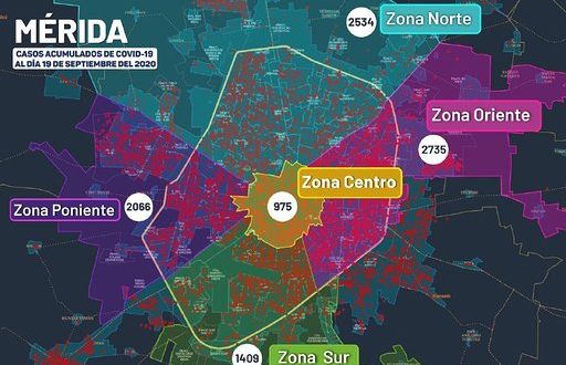 Específicamente, en Mérida se han diagnosticado 9,719 personas contagiadas de Coronavirus (casos acumulados al 19 de septiembre), que viven en: