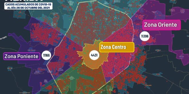 Específicamente, en Mérida se han diagnosticado 46,023 personas contagiadas de Coronavirus (casos acumulados al 26 de octubre), que viven en: