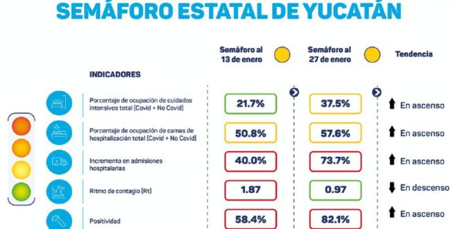 ESTOS SON LOS INDICADORES DEL SEMÁFORO ESTATAL DE YUCATÁN ESTE JUEVES 27 DE ENERO: