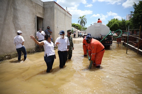 Al salir de este sitio, Vila Dosal también corroboró la llegada de una pipa de la Coordinación Estatal de Protección Civil (Procivy) que cuenta con bombas de succión para reducir el nivel de agua acumulado en las calles y predios inundados de este municipio y tiene una capacidad para almacenar hasta 10,000 litros, la cual comenzó a trabajar para desaguar el edificio del Espacio de Alimentación, Encuentro y Desarrollo del DIF Estatal.