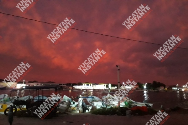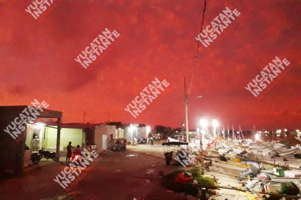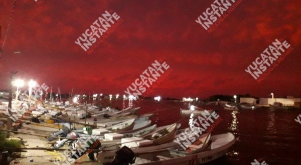 CELESTÚN, Yuc., 17 de octubre de 2019.- Pescadores del Puerto de Celestún captaron en fotos y video el rojizo amanecer que se presentó este día en el puerto de Celestún.