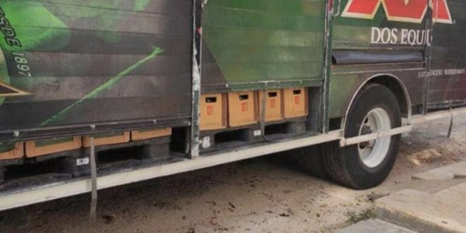 El chofer tuvo que acudir a la dirección policíaca y esperar ahí al representante legal de la empresa cervecera. Información Megamedia