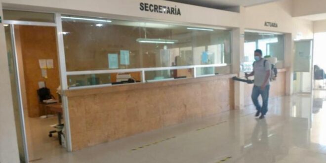 De acuerdo con un informe emitido por la Dirección de Administración del Consejo de la Judicatura, se realizaron 5 jornadas de desinfección en el edificio que alberga los Juzgados Familiares y Mercantiles de la calle 35 de esta ciudad.