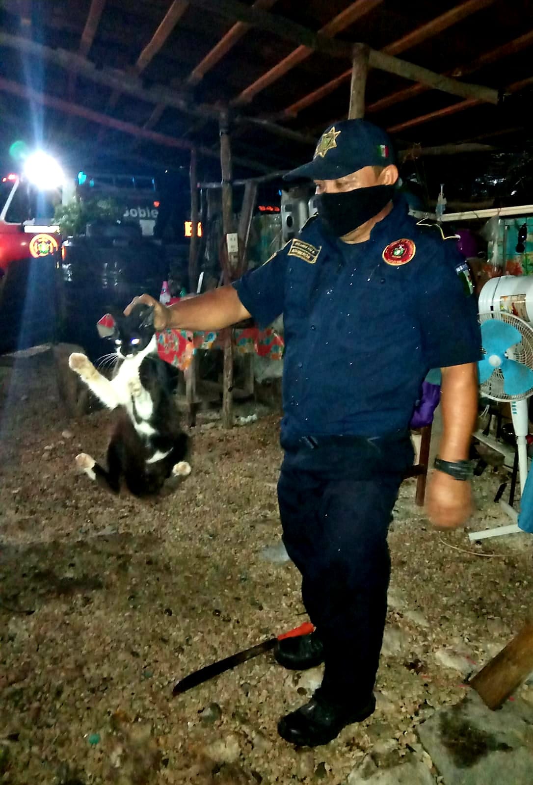 Al domicilio ubicado sobre la calle 18 con 29 llegaron bomberos a bordo de la unidad 843 de la Secretaría de Seguridad Pública (SSP) para rescatar al animal.